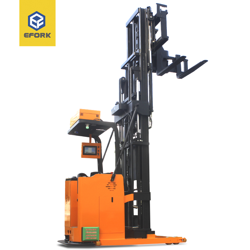 采用自主设计的AGV车体,使用克虏伯高标号钢材,在高举升时,门架形变小,取放货物任务调试简单便捷;车体结构由我司研发部设计出图生产,使用窄通道货架使用;独特的三支点车体底盘结构设计,使AGV的着地效果更好;可变速的液压提升系统,取放货物更加平稳,精度高;