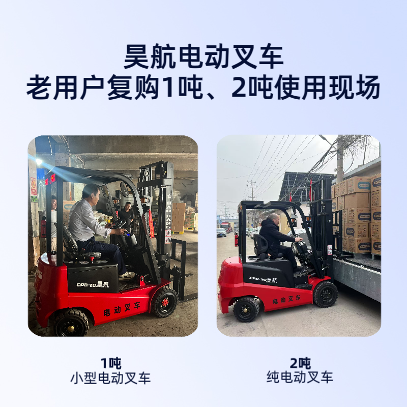 昊航新能源小型电动叉车主营0.5吨,0.8吨,1吨,1.5吨,2吨,2.5吨,3吨,3.5吨,5吨等、线下实体店以及各办事处均可提供本地化销售服务,技术培训、配件供应及快速售后服务响应,解决客户后顾之忧。