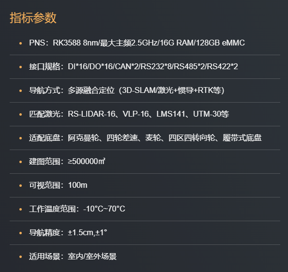 “路霸”机器人行进系统(RMS:Robot Mobile System)由铁木牛凭借世界领先的移动测量技术和3DSLAM算法可为任何机器人配套提供导航定位系统,具有测量、感知、导航、定位、避障、控制等功能,帮助您的机器人安装“眼睛”和“耳朵”,使其能够“测路”、“走路”、“记路”、行走。系统采用开放式架构,可适配阿克曼轮、四轮差速、麦轮、四驱四转向轮、履带式等底盘,通过多源融合导航算法,实现全天候多场景的无人驾驶解决方案。