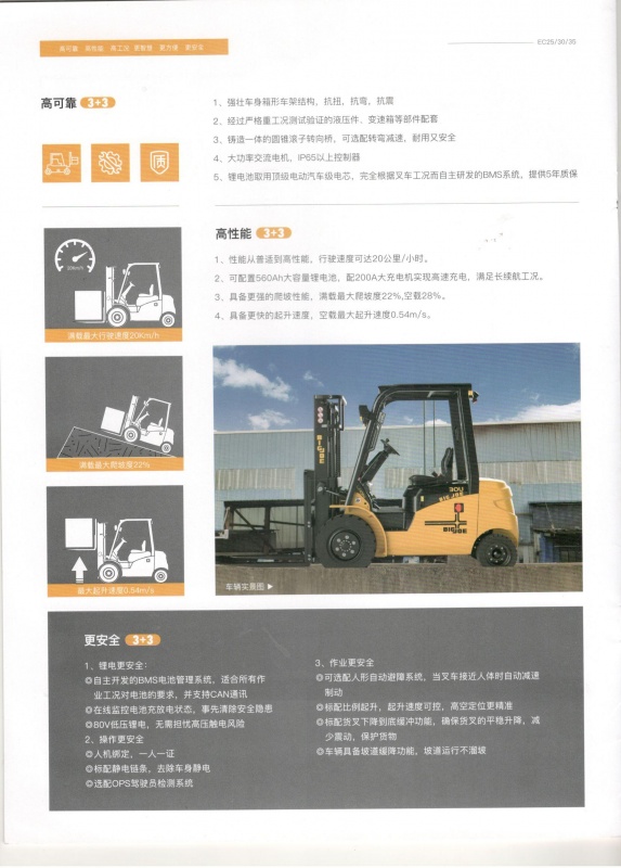 别格乔2.5/3.0/3.5吨锂电叉车