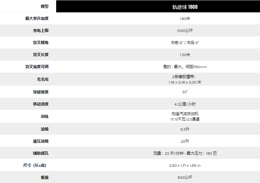 TRACKPALL 1800 是一款轨道上的全地形托盘堆垛机,旨在简化困难环境中托盘的搬运。它非常适合农业作业、商品园艺或工业场地,其特点是能够在陡峭或不平坦的地形上作业。配备汽油发动机,可移动重达 1,500 公斤的负载。其提升系统允许堆叠高达 1.80 m 的托盘,货叉的倾斜度可在 -6° 至 +8° 范围内调节,以实现精确定位。货叉的宽度也可调节,可搬运大型托盘,最大间距为 790 毫米。