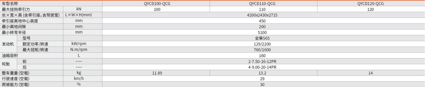 QYCD100/110/120-QCG符合国家最新排放法规的低转速大扭矩发动机,整机动力强劲,高效能四轮钳盘式动力制动,制动平稳可靠,散热效果好。