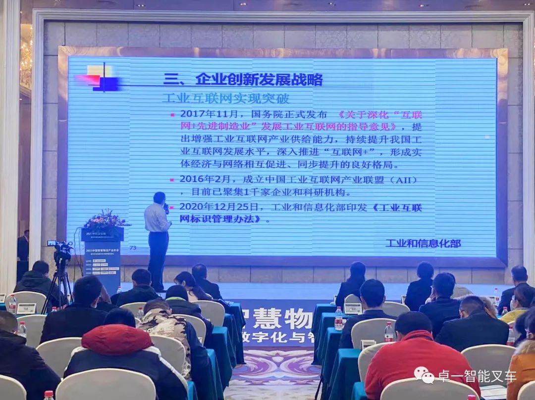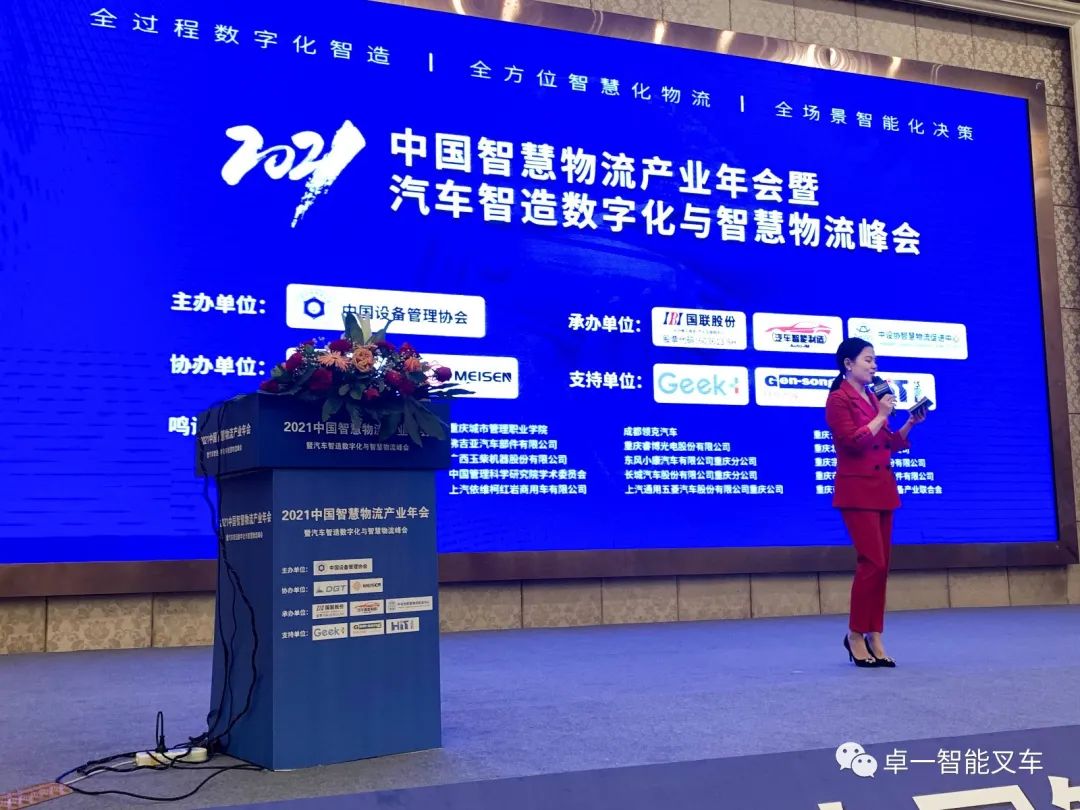 卓一智能叉车助力汽车智造密集存储——记卓一智能叉车参加2021中国智慧物流产业年会暨汽车智造数字化与智慧物流峰会