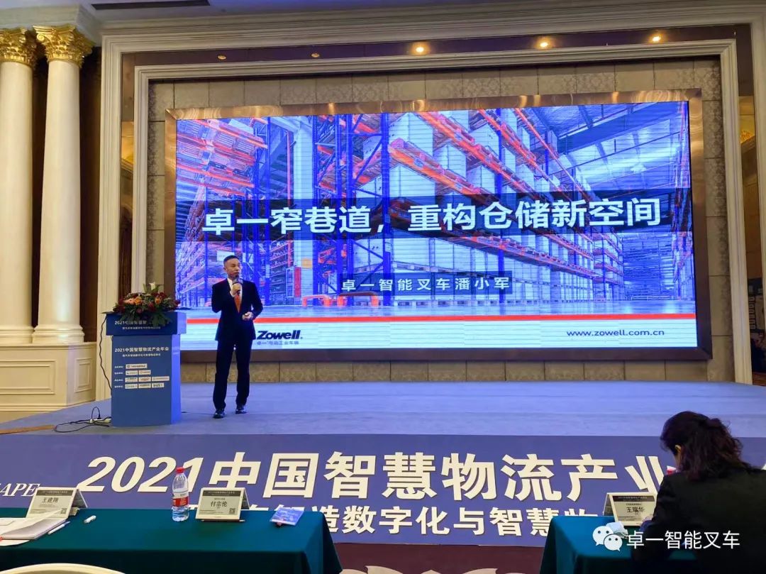 2021年12月22日,2021中国智慧物流产业年会暨汽车智造数字化与智慧物流峰会在山城重庆隆重召开,卓一智能叉车携卓一VUE人上行三向车等卓一窄巷道产品亮相会议,总经理潘总在会上发表了《卓一窄巷道,重构仓储新空间》的主题演讲,受到了与会人员的广泛关注。