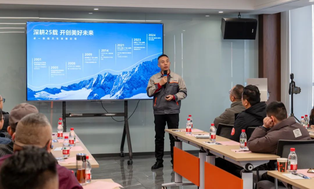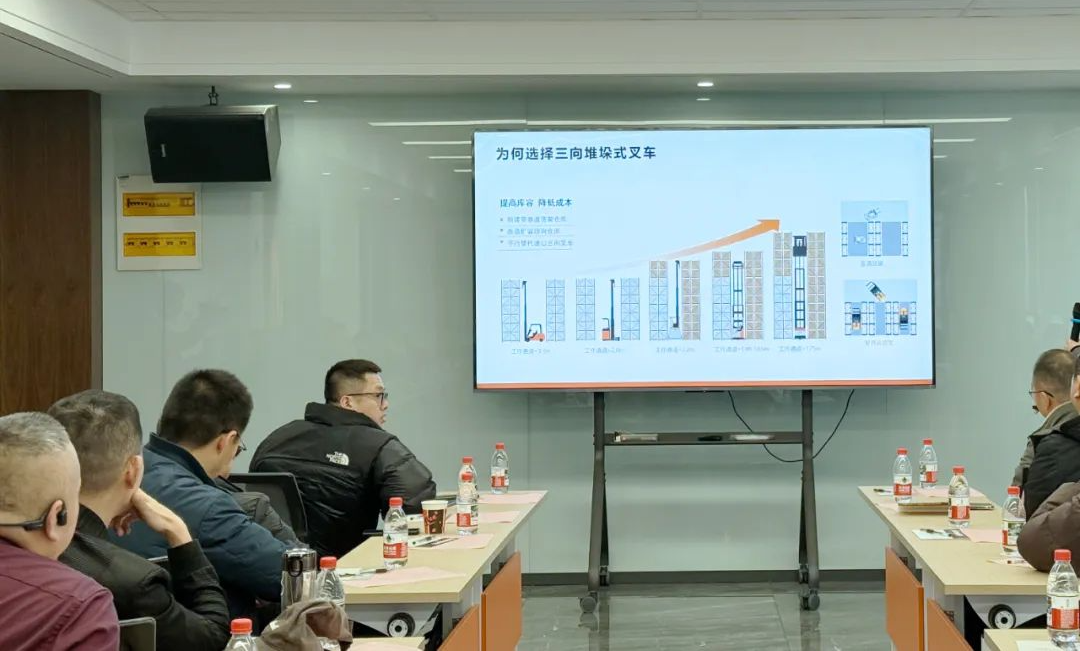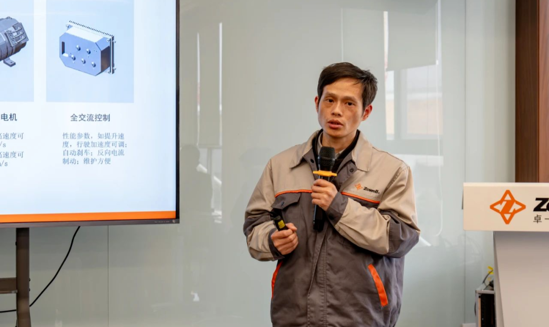 ▲潘总致辞提高仓储空间利用率是企业降本增效的关键,卓一窄巷道叉车凭借部分产品替代进口、产品稳定性及精益制造等优势,在高位密集仓储物流方案提供商中脱颖而出。卓一智能叉车安徽技术总监从安全性、先进性、高效性等多个维度为与会的经销商代表们深度解析了窄巷道系列产品核心技术优势,并为嘉宾们将各个车型的选购步骤、使用环境、行业定制化服务做了详细培训。![]()