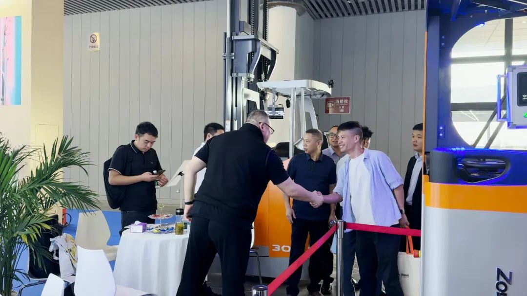 卓一三向AGV叉车具有自动导引功能,能够替代人工驾驶在窄巷道内完成运输、上下货任务,最大载荷1.6吨、最大起升高度9m、货叉可实现180°旋转。在三向AGV叉车自主作业过程中,众多行业观众前来围观,卓一销售团队通过案例视频和现场讲解,向观众们直观展示了高精度导航、全方位智能避障、托盘姿态精准识别及自动充电等无人驾驶AGV叉车的技术优势。