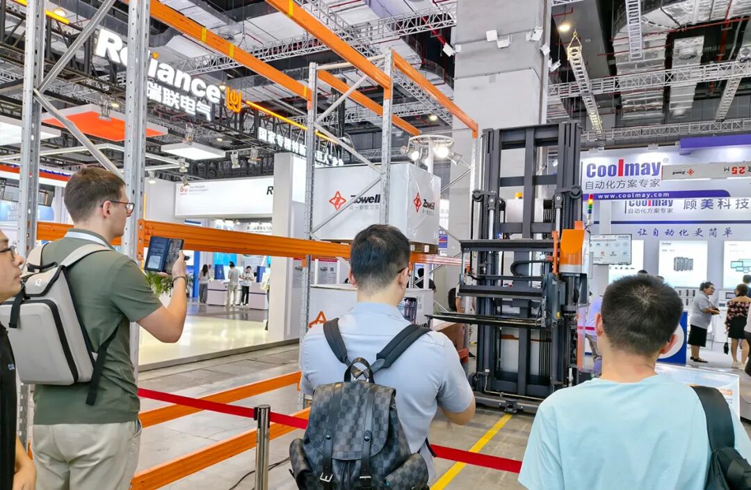 如果说窄巷道方案解决了“空间”难题,那么本次展出的AGV无人三向叉车,则以其“无人化”和“智能化”的卓越表现,为我们描绘了未来智慧物流的清晰蓝图。它完美融合了人下行三向叉车的高度空间利用率和AGV无人化技术,无需人工干预即可在极限窄巷道中精准完成出入库作业。参观过程中,大家对无人叉车案例视频中展现出的智能避障、精准定位、跨楼层作业等无人化技术赞叹不已。