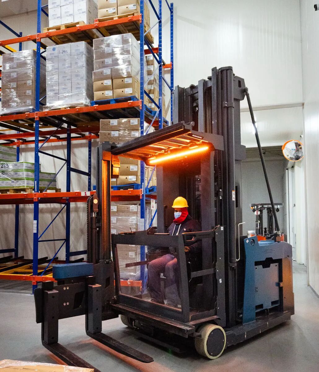 根据客户需求,卓一为客户交付了一台定制化的冷库人上型三向叉车,解决了客户的核心挑战,成为该冷库高效运营的基石。