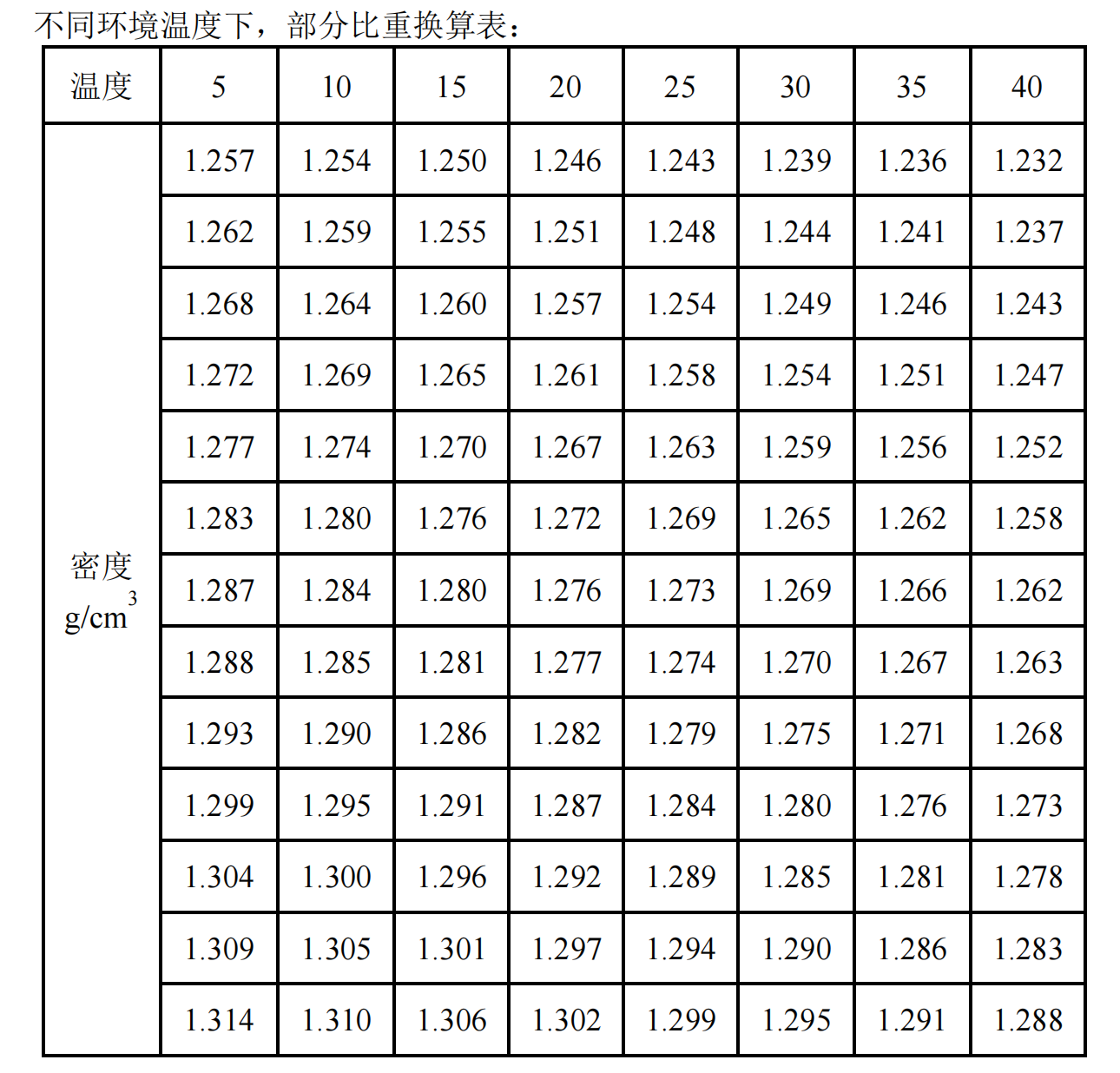 当电解液液面在绿区时(刻度范围为 1.15~1.25),介于以上两者之间。 注:在 25 度环境温度时,蓄电池电解液在充足状态的标准比重一般为:1.28。 Dt=Da-- 0.0007(t-25) ; 式中的 Da 为 25℃时的密度; Dt 为实际温度时的密度; t 为测定时电解液的温度。