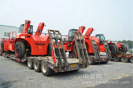 近日,杭叉集团股份有限公司生产的3台45吨正面吊缓缓启运,将发往全国重要港口,交付客户使用。这是继去年推出两台试销产品后的首次批量销售,标志着杭叉的新产品正在向高端化、差异化、个性化发展。这是杭叉深入开展结构调整,确定新的竞争战略,实施真正意义上的产品转型升级的成果。