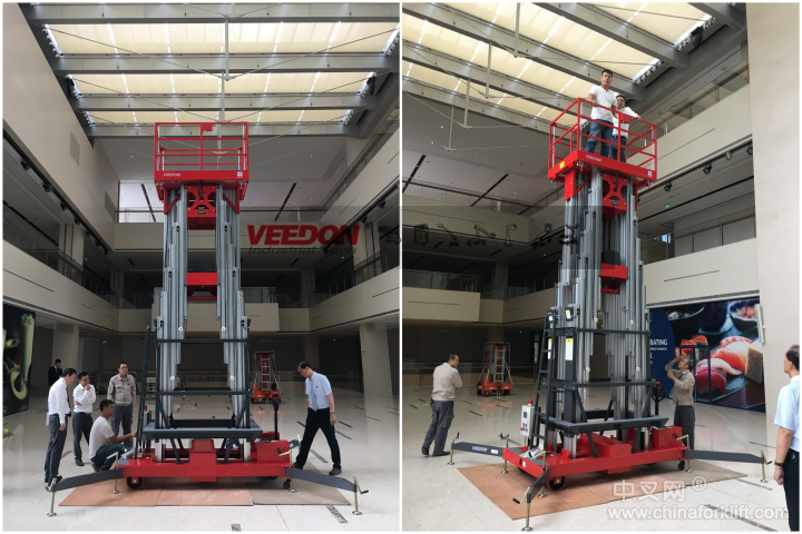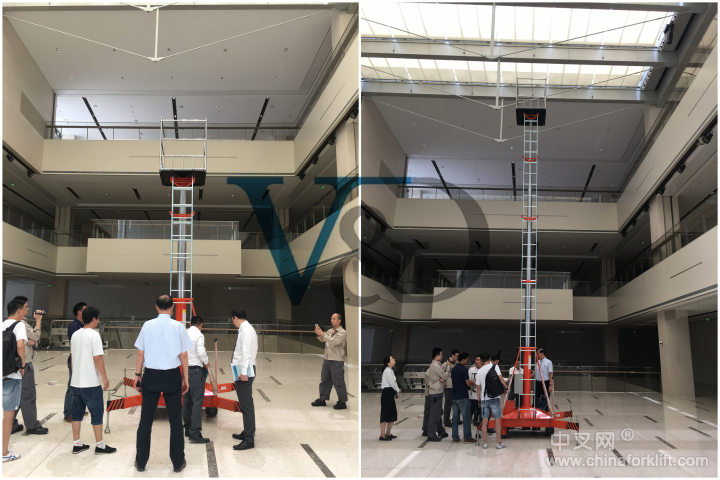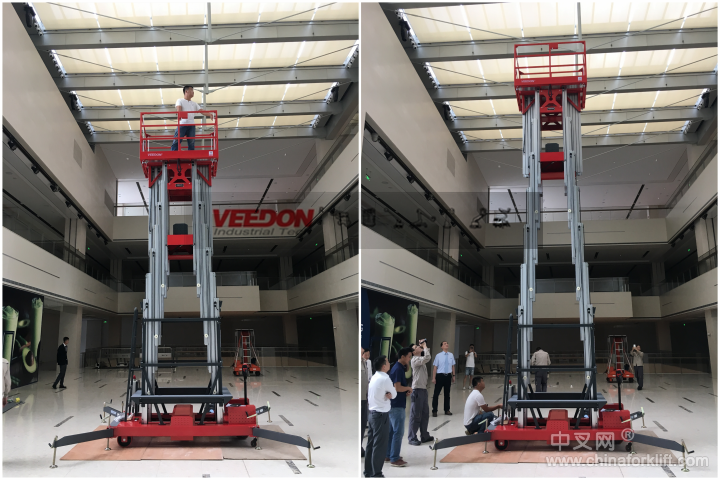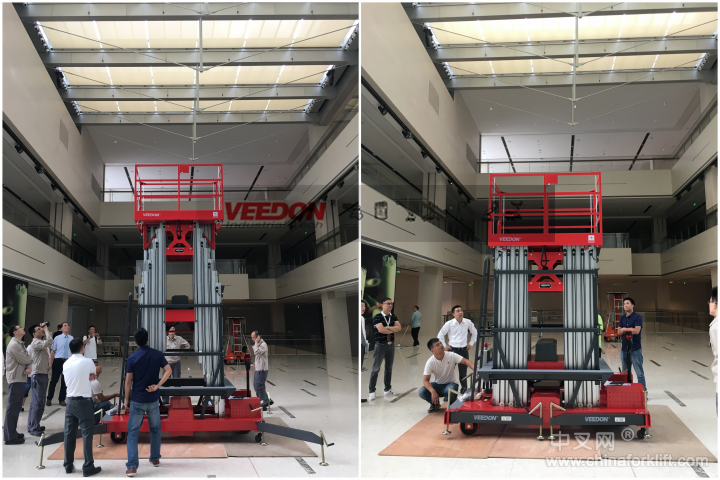 ONE MUSEUM PLACE上海博华广场此次采购两台Veedon液压升降登高车VAWP1020A,VAWP0199主要用于博华商业广场的大厅及商场的维修维护,安装等工作;