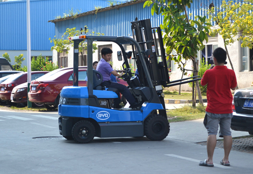 黄伟才主任试驾比亚迪电动平衡重式叉车