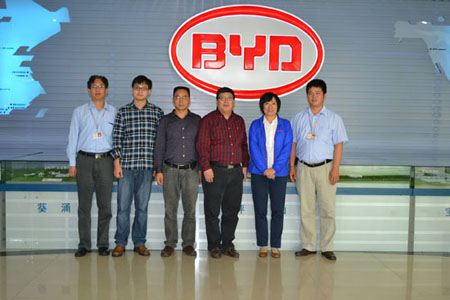 上午,王惠明总经理带领我们首先参观了比亚迪博物馆,详细介绍了比亚迪公司的发展历程,企业规模和公司目前拥有IT、汽车、新能源三大业务板块;随后参观了比亚迪的太阳能电站、储能电站和汽车试车场,并邀请我们试驾e6纯电动汽车,时尚的外观,强劲的动力,舒适的驾乘体验给我们留下深刻的印象,在试车场,我们看到路上飞驰着各种型号的比亚迪汽车,王总说,每一款新车的上市,都要经过成千上万次的道路测试,在测试过程中发现问题并不断改进,提高产品的可靠性;紧接着,在技术人员的陪同下,我们又参观了比亚迪公司引以为傲的“铁电池”生产车间,了解铁电池的工作原理,生产工艺,安全检测等相关内容,技术人员告诉我们,比亚迪这套电池生产线达到世界领先水平,从最初的原料配比到最后的电液加注,电池的每一道生产工序都受到严格的管理和监控,尤其在最后成品检测过程中,更要经过燃烧、撞击、高低温、针刺等一系列严格试验项目,从而最终确保电池的安全性能。走出车间,我们由衷的赞叹比亚迪人在产品研发到生产过程中不断创新、一丝不苟的企业精神。