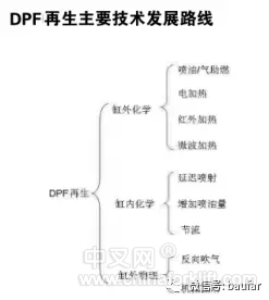 因此,DPF 主动再生技术的发展大致可以分为缸外化学手段、缸内化学手段以及缸外物理手段三条主线,三者共同影响 DPF 主动再生的性能。其中,缸外化学手段主要涉及向过滤体上游空间喷射一定量的燃油或燃气,将颗粒物点燃;或者在过滤体上游安装电加热装置、红外加热装置或微波加热装置来加热过滤体提高表面温度,实现再生。缸内化学手段是改变燃油喷射量或喷射时间或者利用阀门改变进气量,通过改善缸内燃烧过程,调节排气温度,最终将过滤体温度提高到颗粒物燃点;缸外物理手段,则是利用排气的动能或者外部的高压气体倒吹,将颗粒物从 DPF 上吹落或者摇晃剥离,实现 DPF 再生。