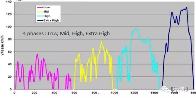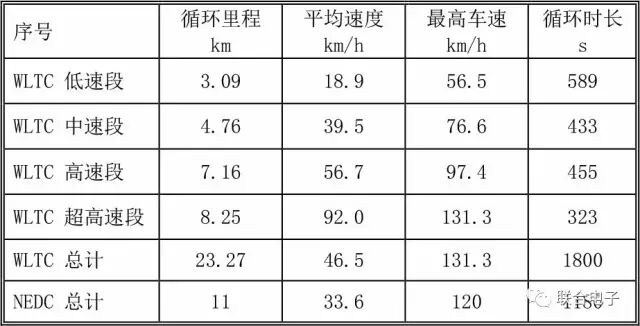 NEDC循环分为4个市区工况和一个郊区工况,从上图2中可以看出相对WLTC循环,该循环中匀速行驶较多,加减速工况较少,在日益拥堵的城市交通中,图中的工况显然与多数的实际驾驶工况有一定差距,而WLTC采用更能反映实际驾驶的工况,如上图1,分为低速段、中速段、高速段和超高速段四个部分,主要特征见下面图表,从表和图中可以看出,相对于NEDC,WLTC循环的循环里程更长,加减速更激烈,最高车速更高,变工况更多,同时覆盖更广泛的车辆运行工况。