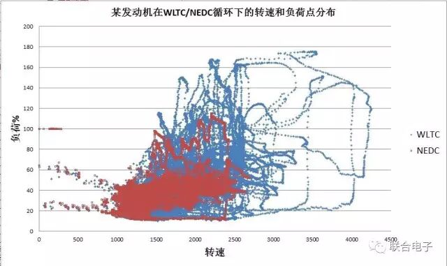 图3 某发动机在WLTC/NEDC循环下的转速和负荷分布