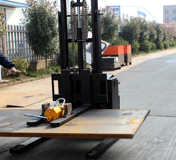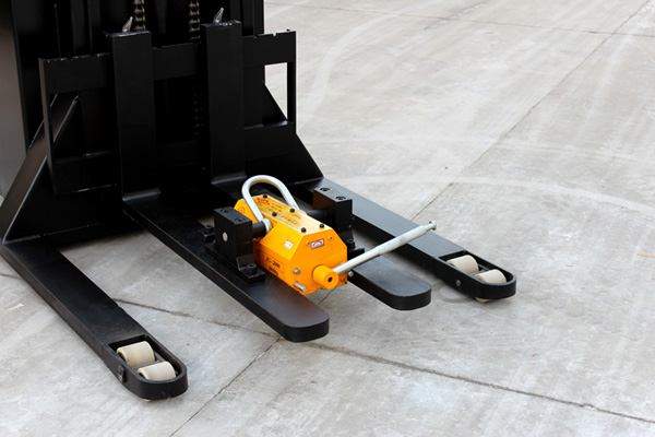 安徽宇锋根据客户的实际工况要求,将电永磁配合叉车使用,使用叉车电永磁吊具作为一种利用优质强磁永磁材料作为磁源,电永磁吊具依靠电脉冲来达到控制磁路闭合的目的,实现磁力的转换,从而吸起或卸下物料。对成件托盘货物进行装卸、堆垛和短距离运输作业的各种轮式搬运车辆。