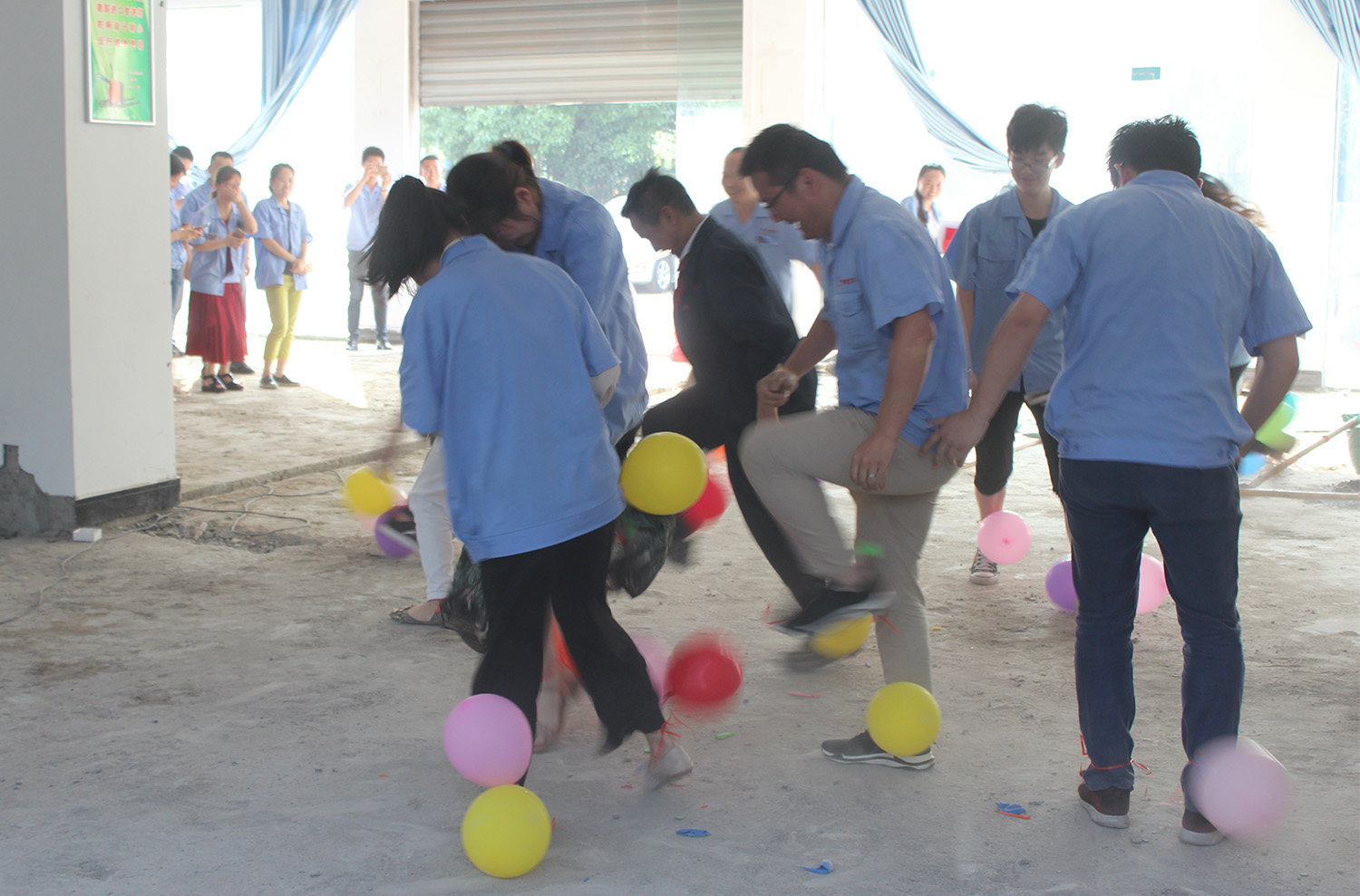 接下来公司企管部为大家准备了2款小游戏活跃气氛,踩气球和抓龙尾。