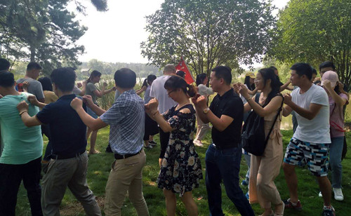 激烈的游戏消耗了大家大量的体力,稍作休息后,一场放松身心迅速增加肢体接触,拉近伙伴们的距离的按摩项目开始了,不分团队,组员穿插游戏,手拉手围成一圈,集体向右转,两只手搭在前面伙伴的肩上,听从口号开始按摩,按摩完毕后面的人问前面的人服务满意否,不满意的小伙伴后面你的服务人员就要出来表演节目了,整个项目团队气氛融洽,也让营销中心的小伙伴们从简单的游戏中了解到服务客户的真谛,真诚待人,用心待人,才能合作共赢,共同进步。