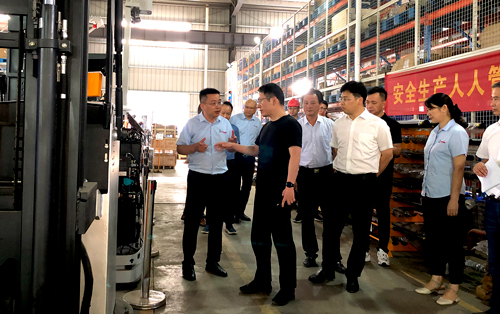 陈书记一行深入总装车间、AMR调试区,AMR及立库展厅等区域察看项目生产线和产品。董事长项卫锋围绕物流机器人、工业车辆,物流系统集成,智能仓储解决方案四大业务板块核心经营状况向各位领导做详细介绍,并就未来发展目标与战略规划做详尽阐述。