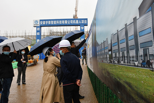 10月27日下午,肥西县委副书记、县政府县长、党组书记王新华,县政府副县长程潭,县自然资源和规划局党委书记、局长周兵,肥西县投资促进中心党组书记、主任张琳,肥西县发展和改革委员会主任翟从新,花岗镇镇长李峥嵘,花岗镇党委副书记童林,工会副主席王韧一行莅临安徽宇锋智能科技有限公司调研年产2万辆工业机器人生产基地项目建设情况,公司副总经理季彩玲陪同接待并做项目介绍。
