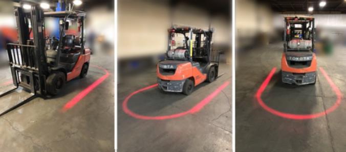 此外,加入叉车安全灯可以提高作业区域的能见度和沟通能力。在前后安装蓝色叉车灯,行人可以清楚地看到附近有叉车。