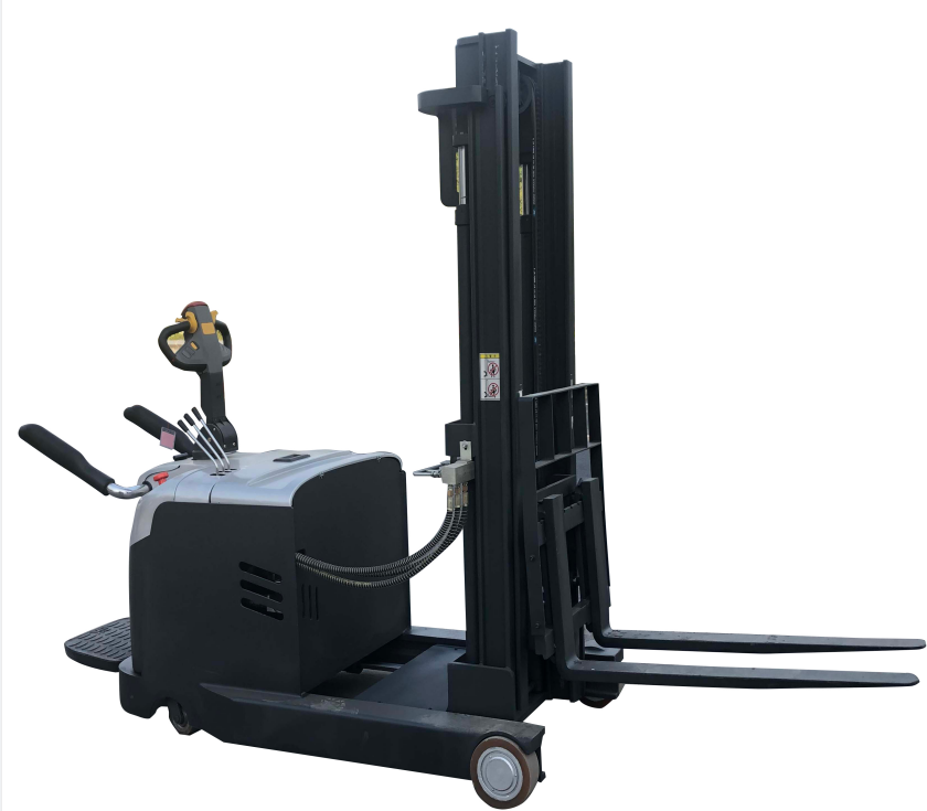 宽叉腿步行式电动堆垛机采用单面托盘,体积小,可用于狭窄的货架通道。在价格方面,它也是全电动堆垛机中Z便宜、Z划算的车型。但由于驱动在侧面,不宜用于颠簸路面。