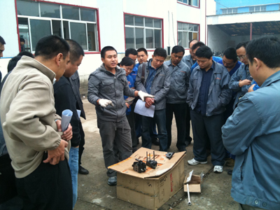 在本次培训期间,晨光公司的技术人员对多路阀的产品原理、性能及维护中的注意事项进行了非常详尽的讲解,并进行了现场的拆装演示。公司售后服务人员和部分技术人员工认真听取了讲解内容,做好了学习笔记,并现场提出问题,进行了讨论交流。