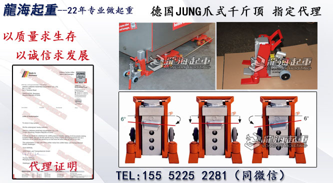 【公司承诺】:德国起重爪式千斤顶,我们货真价实!德国JUNG品牌指定代理商,原装进口。凡客户从我公司定购此品牌产品,如收到货物时发现有假货、仿货均以产品货值的100倍金额赔偿!