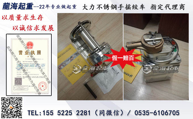 ▶不锈钢手摇绞车图片(含企业营业执照):