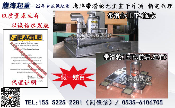 ▶鹰牌带滑轮无尘室千斤顶图片(含代理证明):