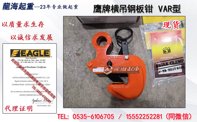 ▶VAR型鹰牌横吊钢板钳图片(含代理证明):