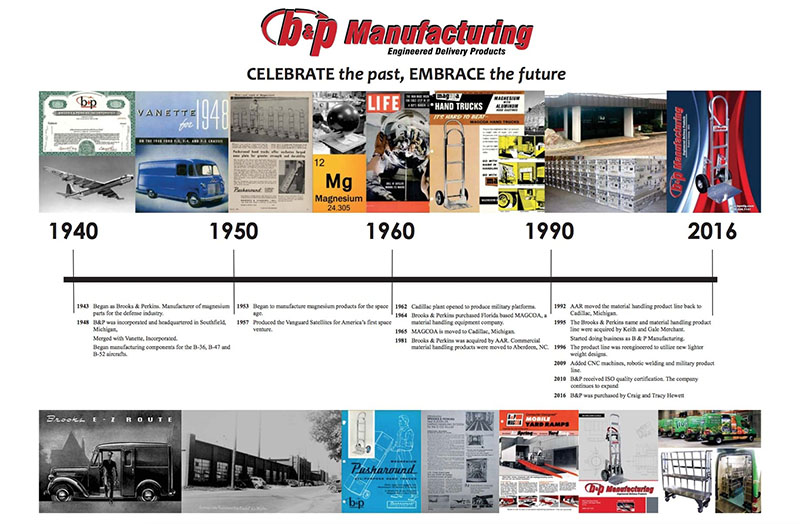 自1943年以来,美国B&P Manufacturing公司一直在设计和制造质量最高的物料处理产品。从那时起,我们的产品和工艺发生了翻天覆地的变化,以适应客户不断变化的需求。