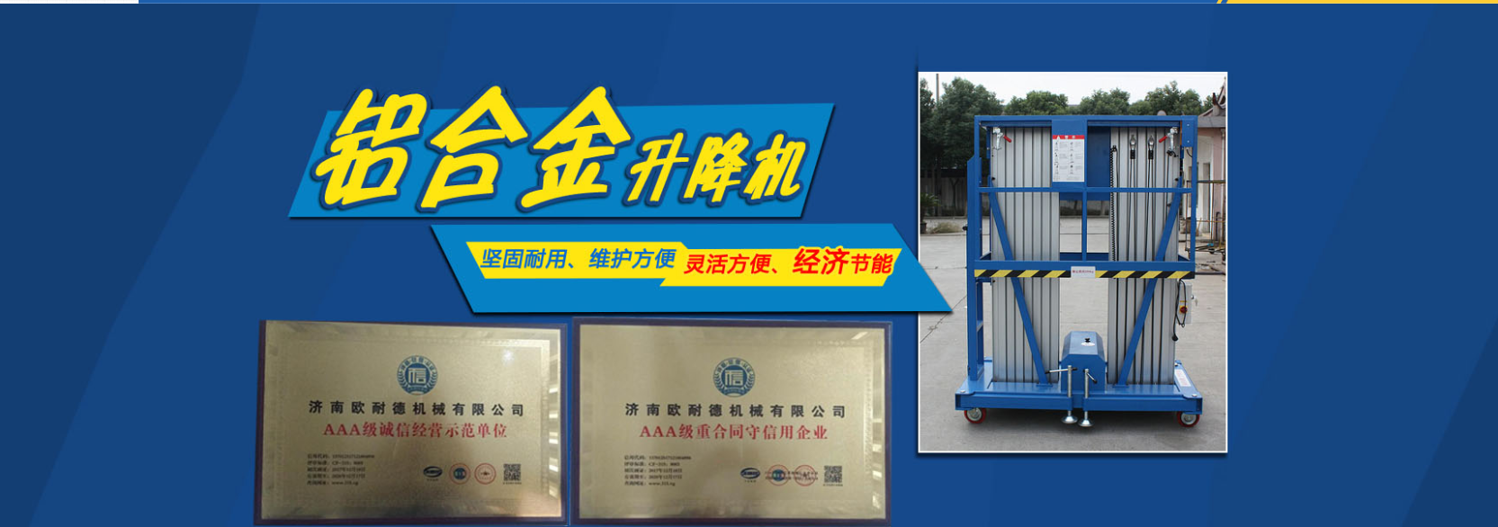 济南欧耐德机械有限公司是一家集设计、研发、制造、销售于一体的企业,专业制造导轨式升降平台、车载式升降平台,固定式升降平台、车载式升降平台、铝合金升降平台、移动登车桥和固定登车桥、升降舞台、升降旋转舞台等。济南欧耐德机械有限公司制造的液压升降平台广泛应用于各个行业,如工矿企业、生产流水线、铁路、机场、军用、车站码头、货物装卸升举、厂房工地、仓储物流、高空设备安装等场合。