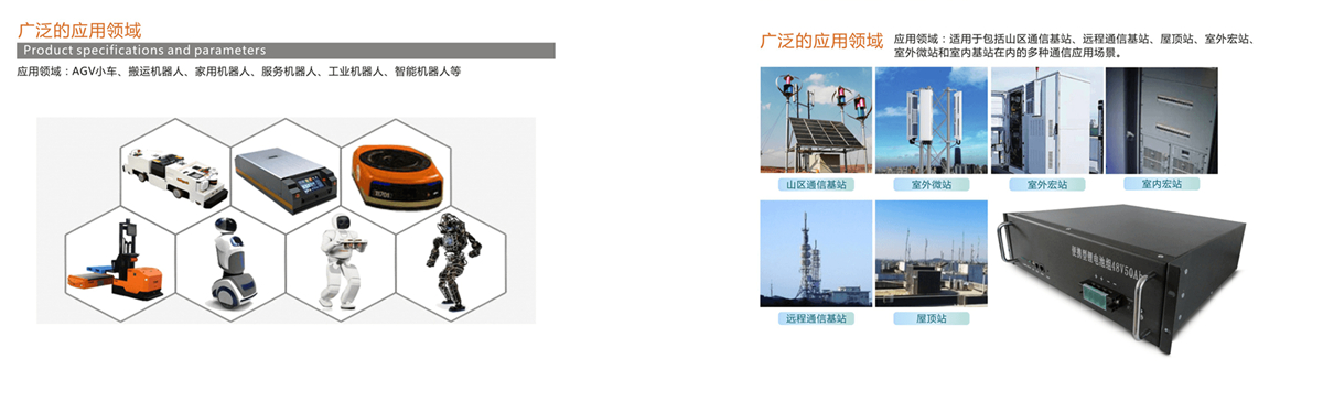 我们的产品主要用于5G通信基站后备电源、2U 3U铁塔电池、房车备用电源、新国标锂电池、电动三轮车/摩托车/自行车、电动滑板车/平衡车、电动工具、智能设备、便携应急电源、户外储能电源、太阳能灯具等。我们有优秀的产品和专业的销售和技术团队,如果您对我公司的产品服务有兴趣,期待您在线留言或者来电咨询。