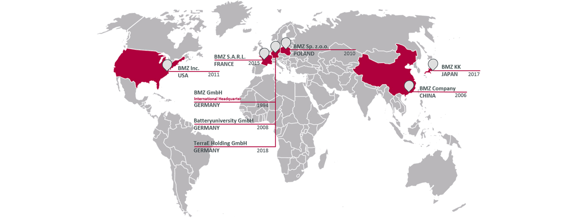 德国BMZ集团是一家综合性锂电子电池系统解决方案供应商,集团总部位于德国法兰克福。在中国、波兰和美国拥有生产基地,并在日本和法国设有办事处,全球雇佣3,000名专业人才,总生产面积超过20万平方米,提供一个全球的服务网络。BMZ集团25年来一直致力于锂离子电池的研发,由原型设计到高效量产的规划和实施。