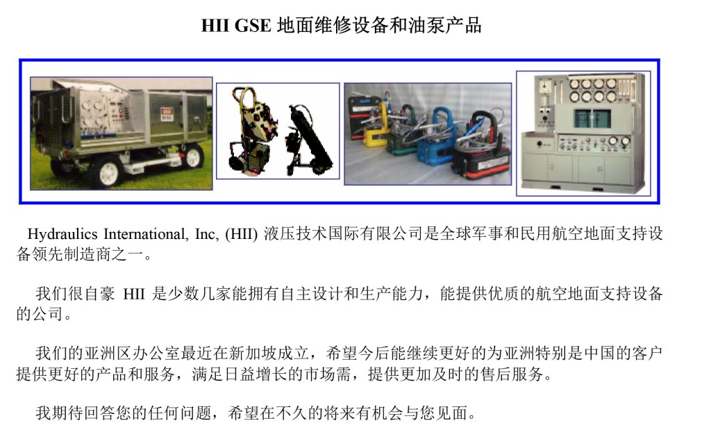 - 美国HII集团亚洲办事处(Hydraulics International)