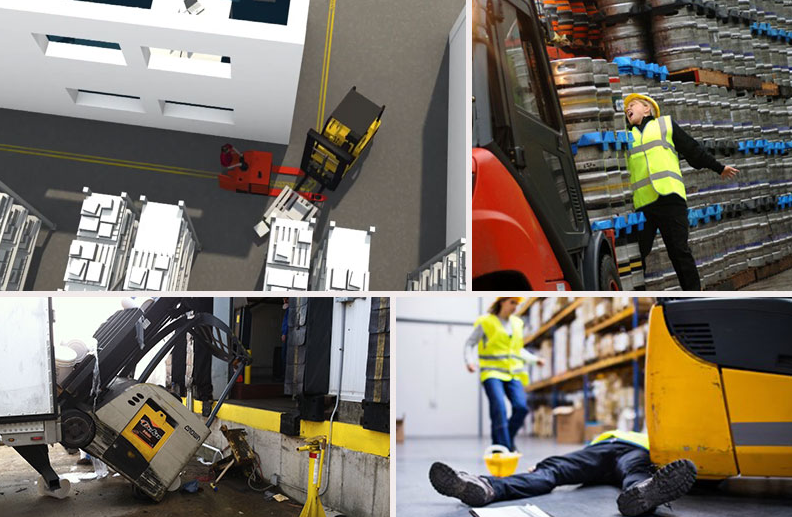 ❸ 叉车倒车行驶盲区范围大,很难注意行人经过;