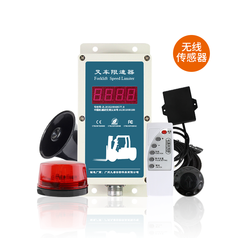 九盾安防叉车限速器采用高品质内核芯片电路,四核单芯片内核设置,性能稳定;特种塑料材质,防水防尘防震动,可适应特殊工作环境;安装简单,无线传感器不伤叉车,无损安装,方便快捷;10米红外线遥控设置,0~99秒锁定时间可调;智报警语音可随意进行更换;外部喇叭报警,声音可达120dB;外接LED大显示屏,可电脑查询违章记录。