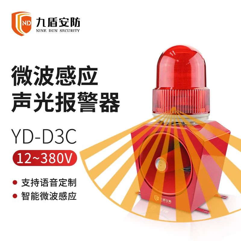 随着经济的提升,人们对生活品质和安全也是越来越重视了,特别是厂区的安全。目前一些大型的工厂,都有自己的仓库,而很多工厂因为管理不善,导致产品失窃等问题的发生,公司财产遭受损失,还产生了恶劣的影响。特别是一些贵重产品存放的仓库还要有保安负责看管,短期时间可能还可以接受,但是长期来看,对企业来说不仅增加了人力成本,还浪费了金钱。而使用微波感应声光报警器可以解决这个问题:微波感应声光报警器可以在感应范围内,探测到有移动的人和物体,即触发语音、警灯警报,不受温度、湿度和灰尘影响。YD-D3C微波感应声光报警器是九盾安防研发的一款应用场景广泛的声光警示器,通过微波感应一定范围内的移动物体从而触发报警,广泛应用于停车场出入口,铁道口以及人行路口安全提示,机房重地、港口码头、仓库等场所,满足不同场景报警需求。