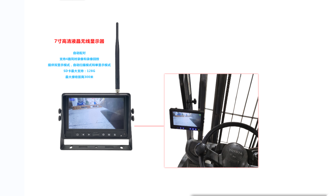 九盾安防|叉车高位显示器,无线强磁吸附摄像头