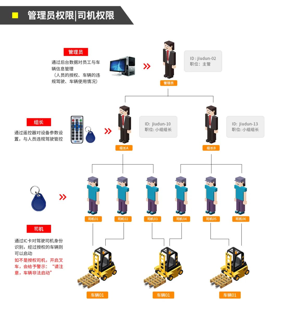 ★ 授权驾驶,刷IC卡启动叉车,可刷员工卡;