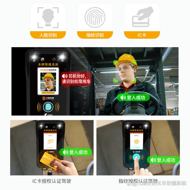 司机,可通过人脸识别、IC卡、指纹识别三种任意一种认证,解锁车辆使用权限。一辆车可识别多个司机认证信息,解决人员使用混乱问题。