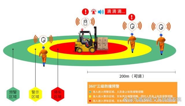 3、它可以根据不同的叉车型号和作业需求(人车防撞、车车防撞、拐角防撞、门口防撞等)进行定制和优化,以满足各种复杂场景的安全需求。