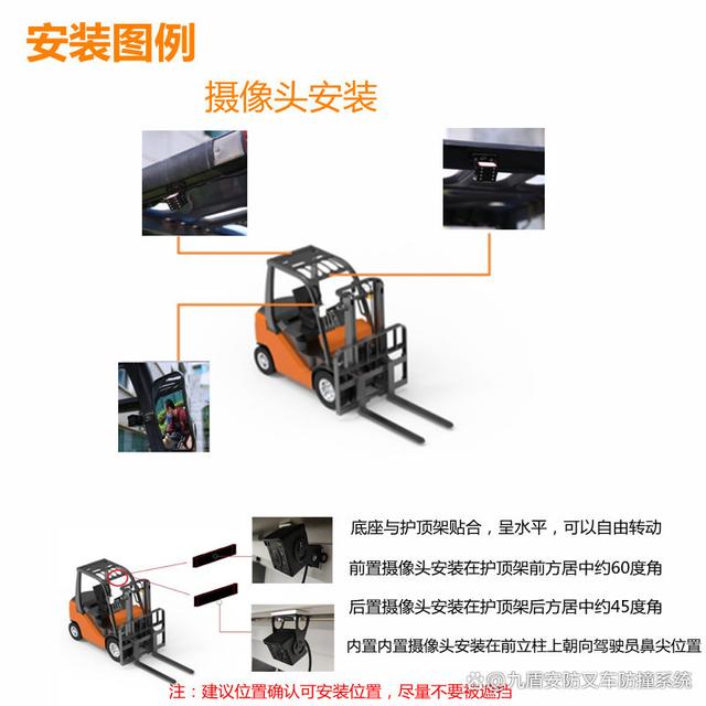 2.叉车倒车检测:在叉车进行倒车操作时进行语音提醒及警灯报警提醒司机及周边人员。