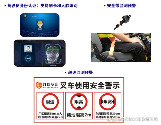 采用“九盾安防-叉车数字化管理系统+主动安全预警系统”,在叉车上安装数字化智能终端,通过数字化智能终端对车辆和司机的实时数据进行采集和上传,利用系统平台功能统计和分析车辆的运行效率。同时,主动安全预警系统实现对视线盲区的障碍物检测、预警以及主动停车,有效的避免车辆因视线盲区及司机操作不当可能发生的碰撞事故;保障了财产及车辆周边人员的安全。