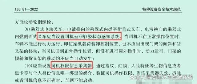 5.TSG-81标准:《场(厂)内专用机动车辆安全技术规程》(TSG 81—2022)标准要求新增叉车司机权限采集器,验证司机操作权限。