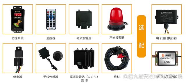 需要左右后三面防撞选3个雷达,只需要倒车一面防撞选1个雷达;用于限速的油门控制器是选配,根据车辆情况分电子油门和机械油门!