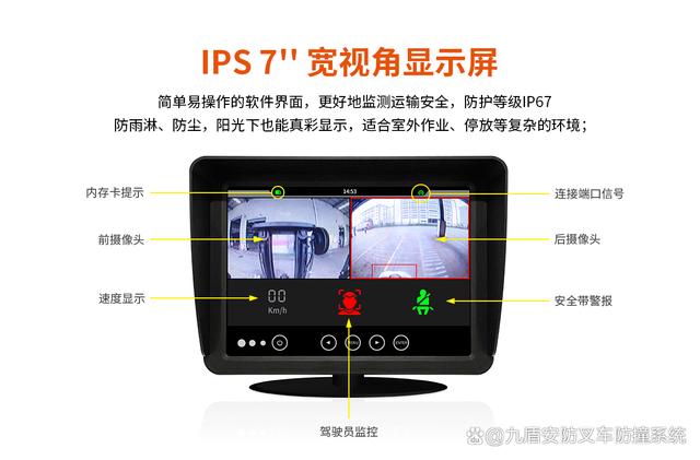 IPS 7"宽视角显示屏,以其卓越的显示效果与防护等级,成为驾驶员的得力助手。无论是烈日炎炎还是风雨交加,都能清晰呈现画面,让安全监控无惧环境挑战。这一系统,不仅是技术的堆砌,更是对生命与效率的尊重与守护。