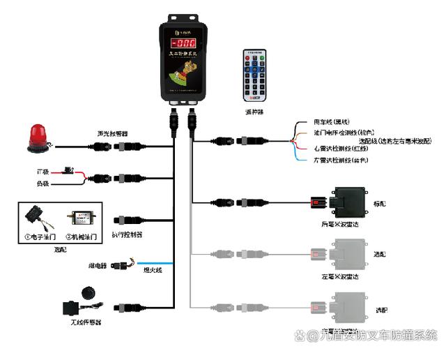 配件清单:防撞系统、遥控器、毫米波雷达、声光警灯、继电器、无线传感器、线材、电子油门执行器(选配)、机械油门执行器(选配)
